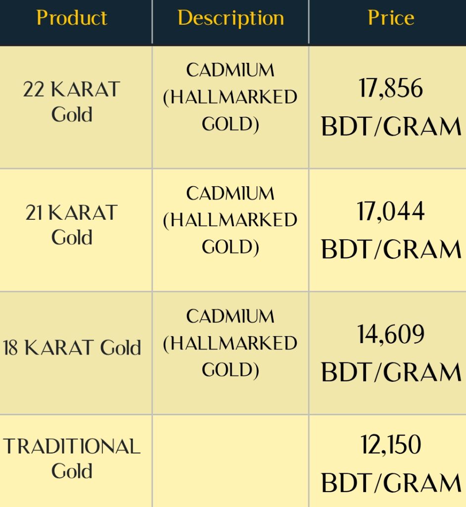 | ১৮ ক্যারেট | ১৪৬০৯ টাকা |