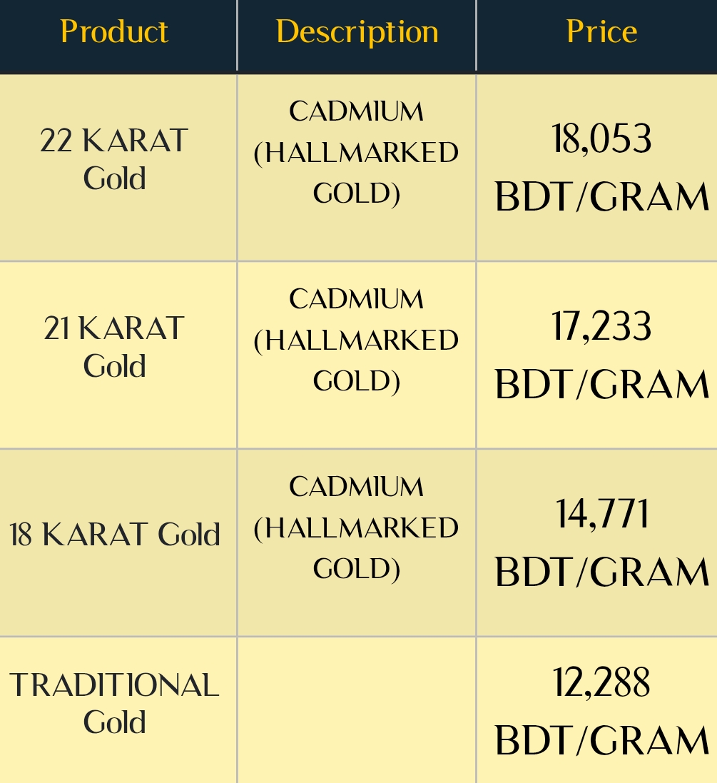 | ১৮ ক্যারেট | ১৪৭৭১ টাকা |
